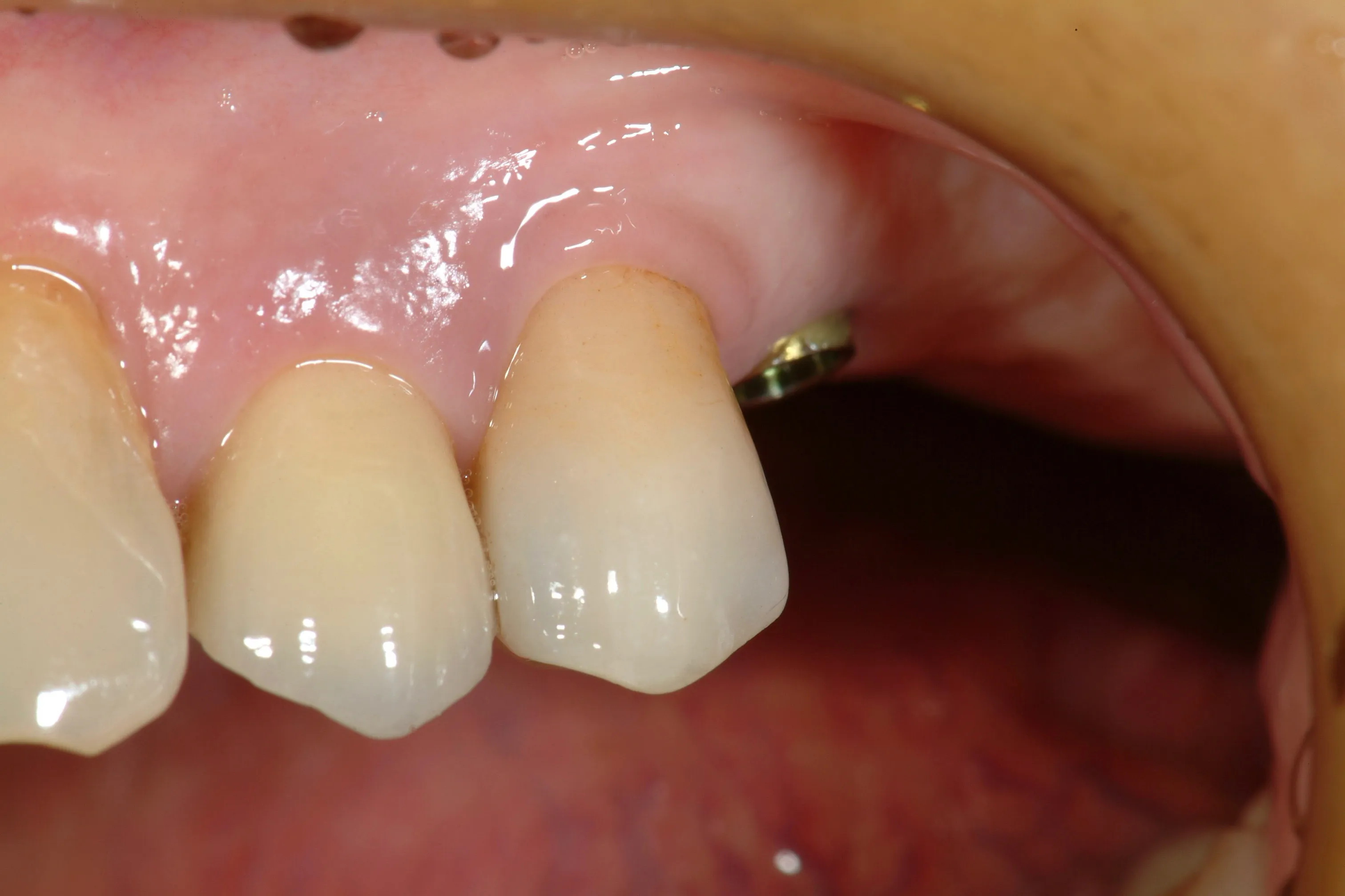 Sostituzione di un elemento dentale mancante con impianto e corona protesica, utilizzando una tecnica minimamente invasiva per un recupero più rapido e confortevole.